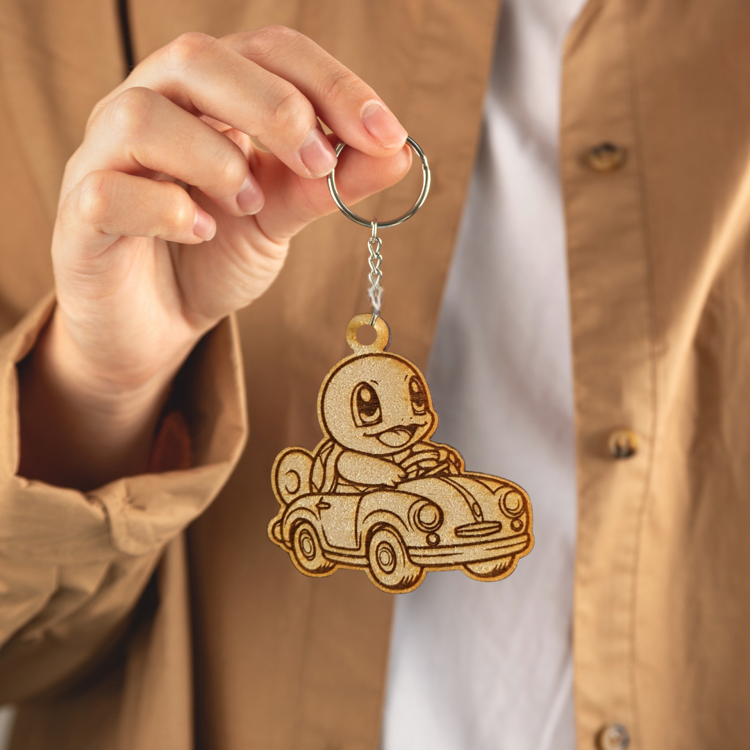 Portachiavi Pokémon Cute Chibi Squirtle in Auto - Legno Inciso al Laser